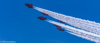 The RAF Red Arrows displaying at the Swansea Airshow 2017